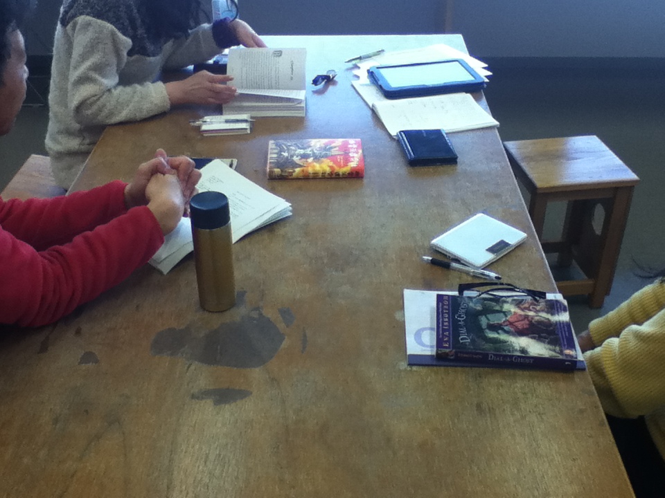 続いて、気に入った箇所、考えさせられた点、よく意味が分からなかったところなどを順に披露しあい、、、のはずでしたが、司会の準備不足もありそれほど秩序だっては進みませんでした。「この○○ページのこの箇所が素晴らしい!」という意見に続いて、「そこの少し後に出てくる単語が意味取りづらい」とか「そこのセリフいいよね」などという具合です。混沌とした面もありましたが、少人数ということもあって自由に意見が交差し合う読書会になったと思います。
